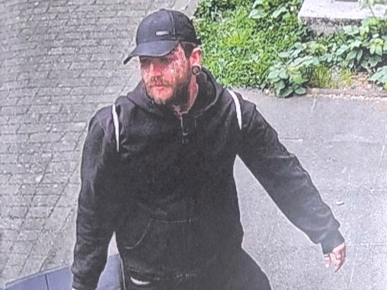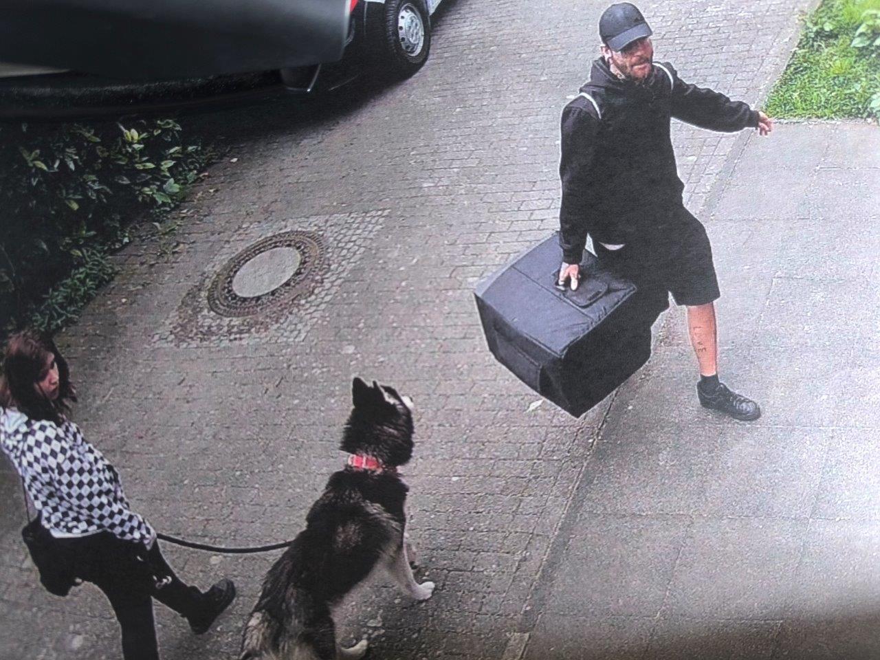 - gänzlich schwarz bekleidet: Baseballkappe, Trainingsjacke mit Reißverschluss, kurze Hose